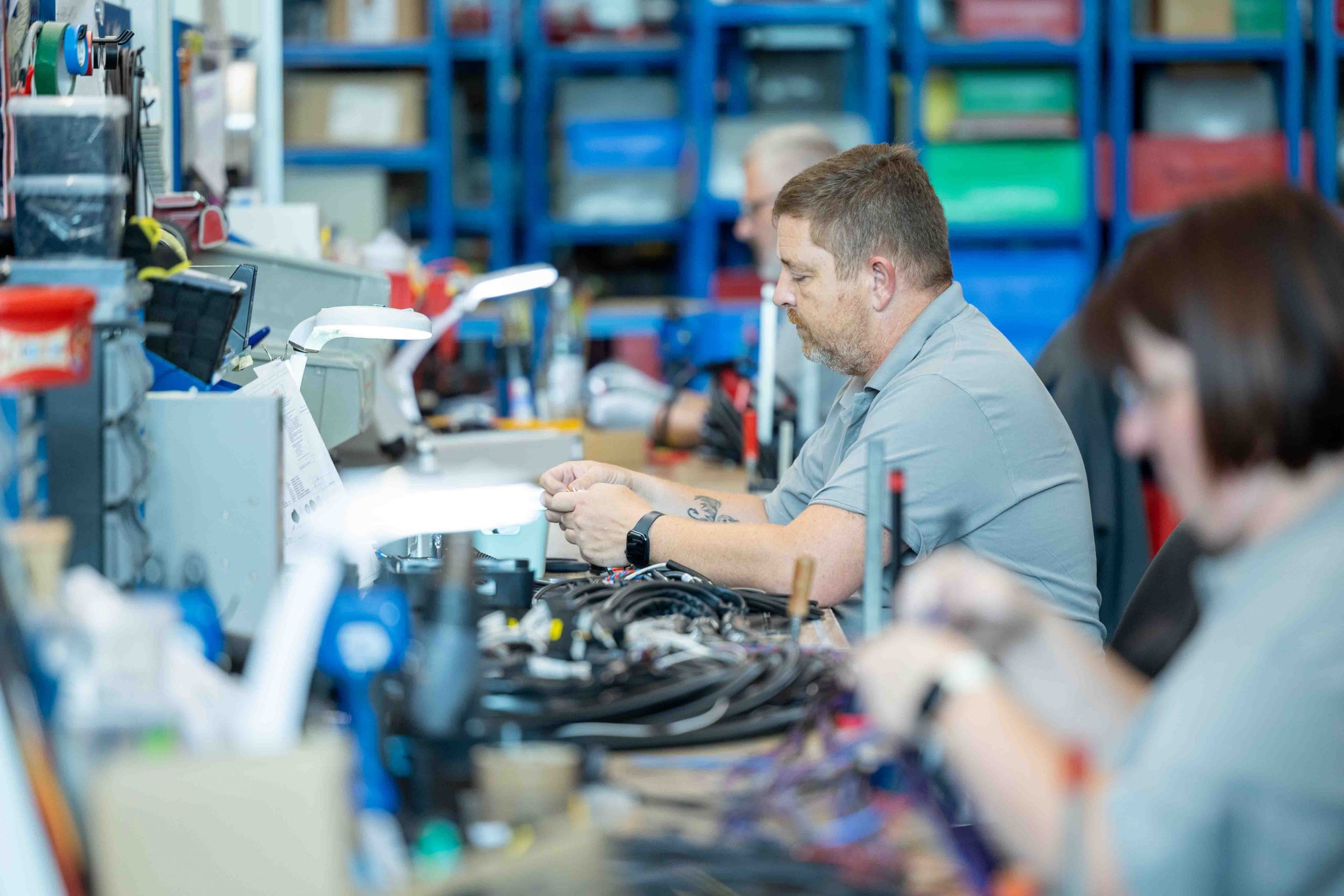 Montage von Kabeln, Steckverbindern, Gehäusen und elektronischen Komponenten